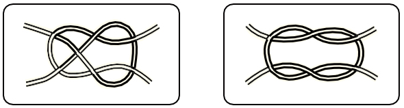 【左】スポーツノット(蛙又) 【右】フラットノット(本目)